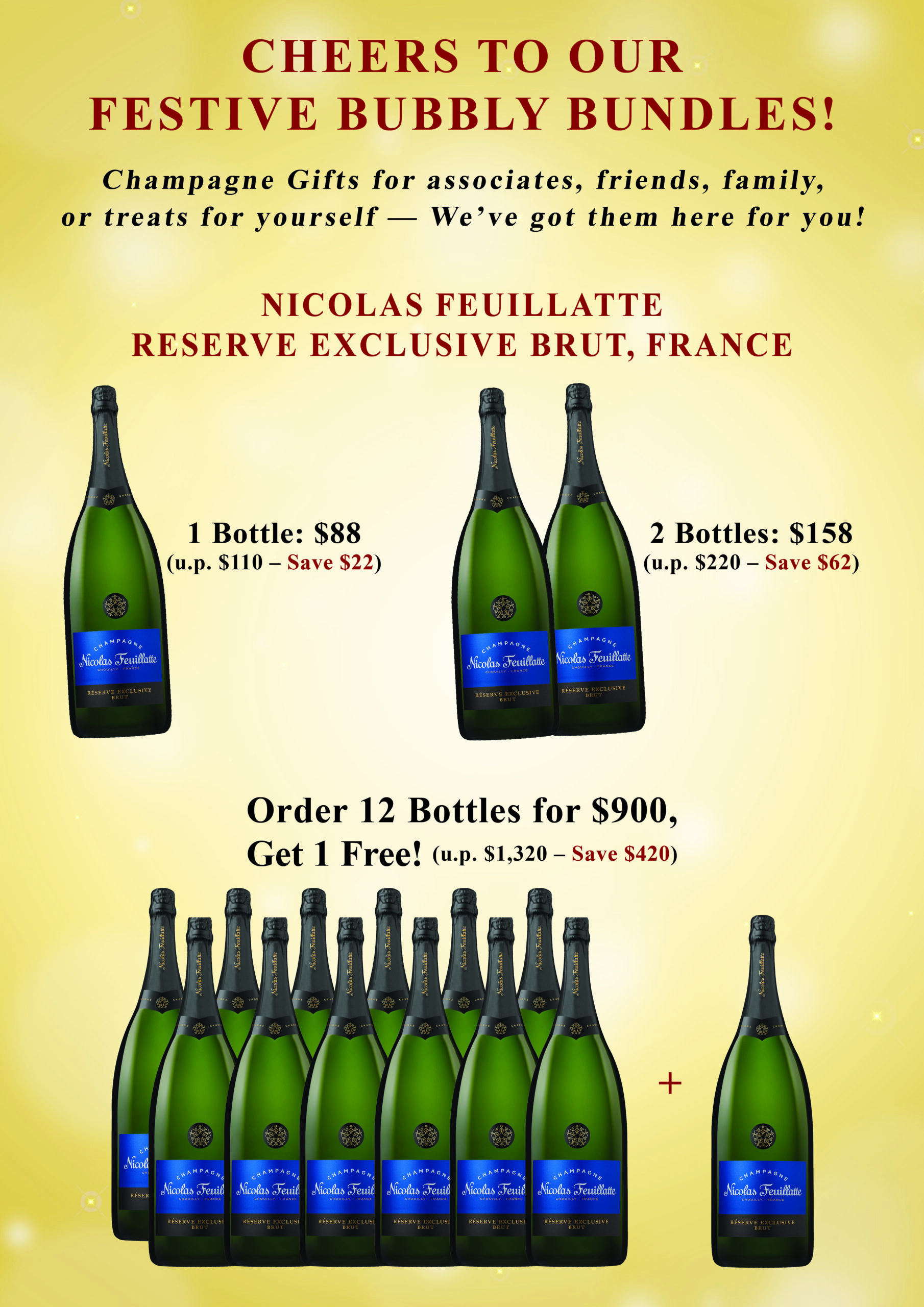 For all your parties, don't miss out on our specials bundle deals for Nicolas Feuillatte Reserve Exclusive Brut from France!