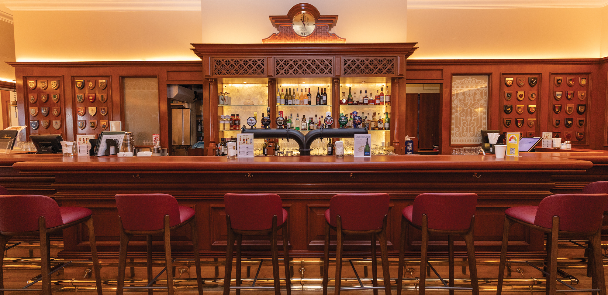 The interior of the Main Lounge has stayed mostly true to its origins with its rich dark wood columns, showcasing countless prestigious sporting awards and the much loved long bar.